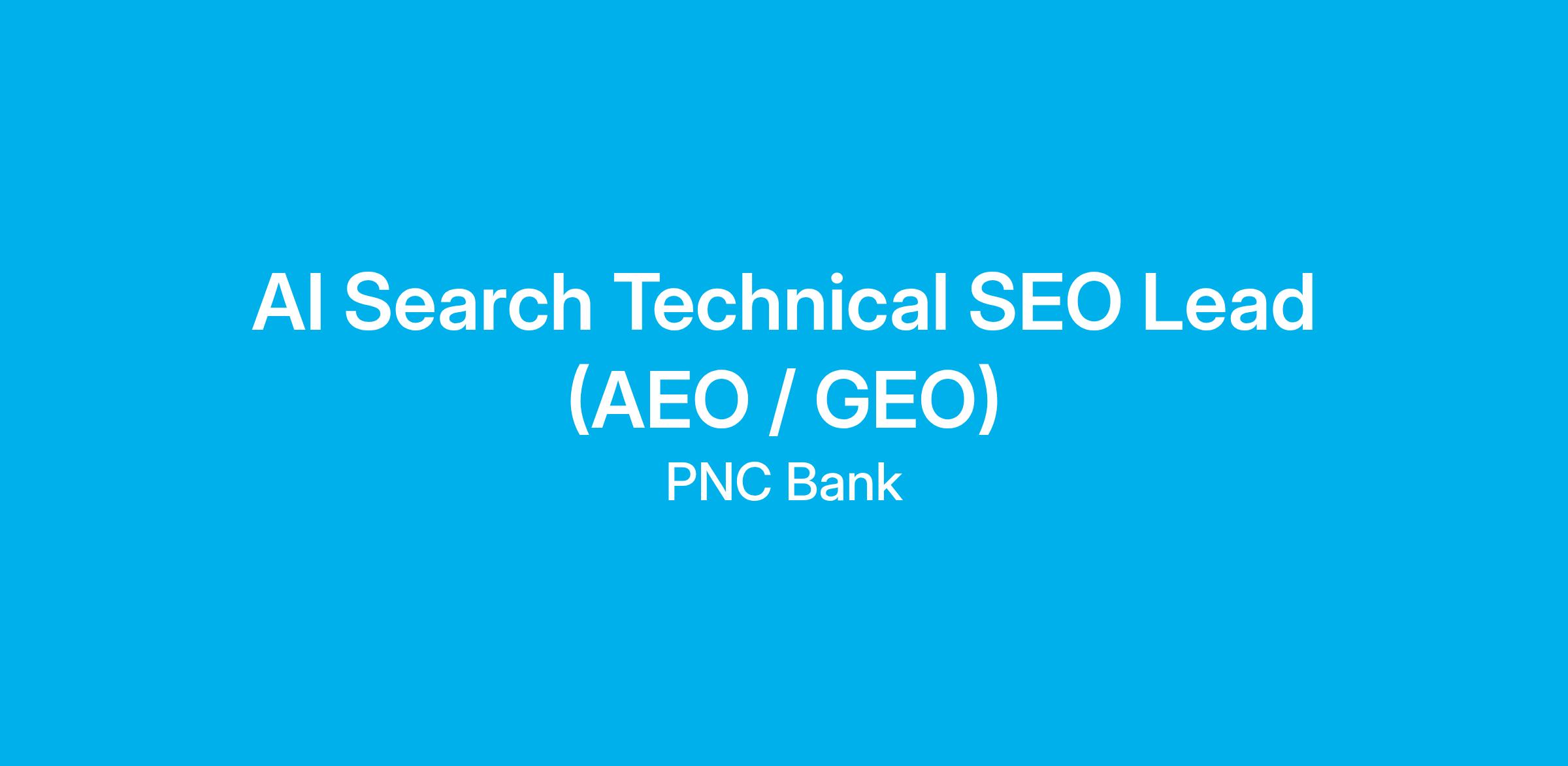 At PNC, our people are our greatest differentiator and competitive advantage in the markets we serve. We are all united in delivering the best experience for our customers. We work together each day to foster an inclusive workplace culture where all of our employees feel respected, valued and have an opportunity to contribute to the company’s success. We are looking for an AI Search Technical SEO Lead within PNC's Marketing organization.