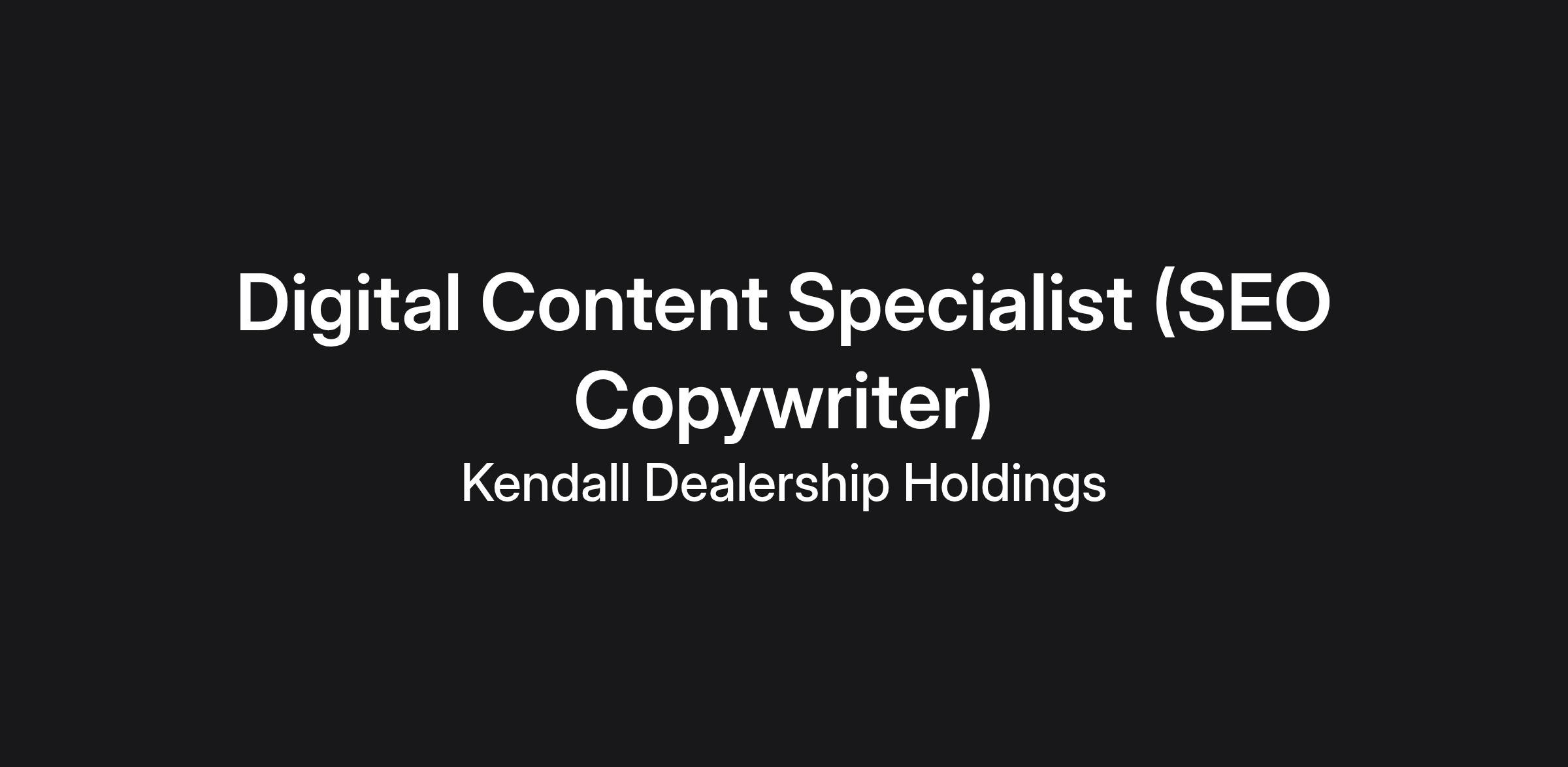 Kendall Auto Group, a premier employer in the Treasure Valley, has an immediate opening for a Digital Content Specialist (SEO) Copywriter. This is an in-office position at Kendall Dealership Support Center in Meridian, Idaho.