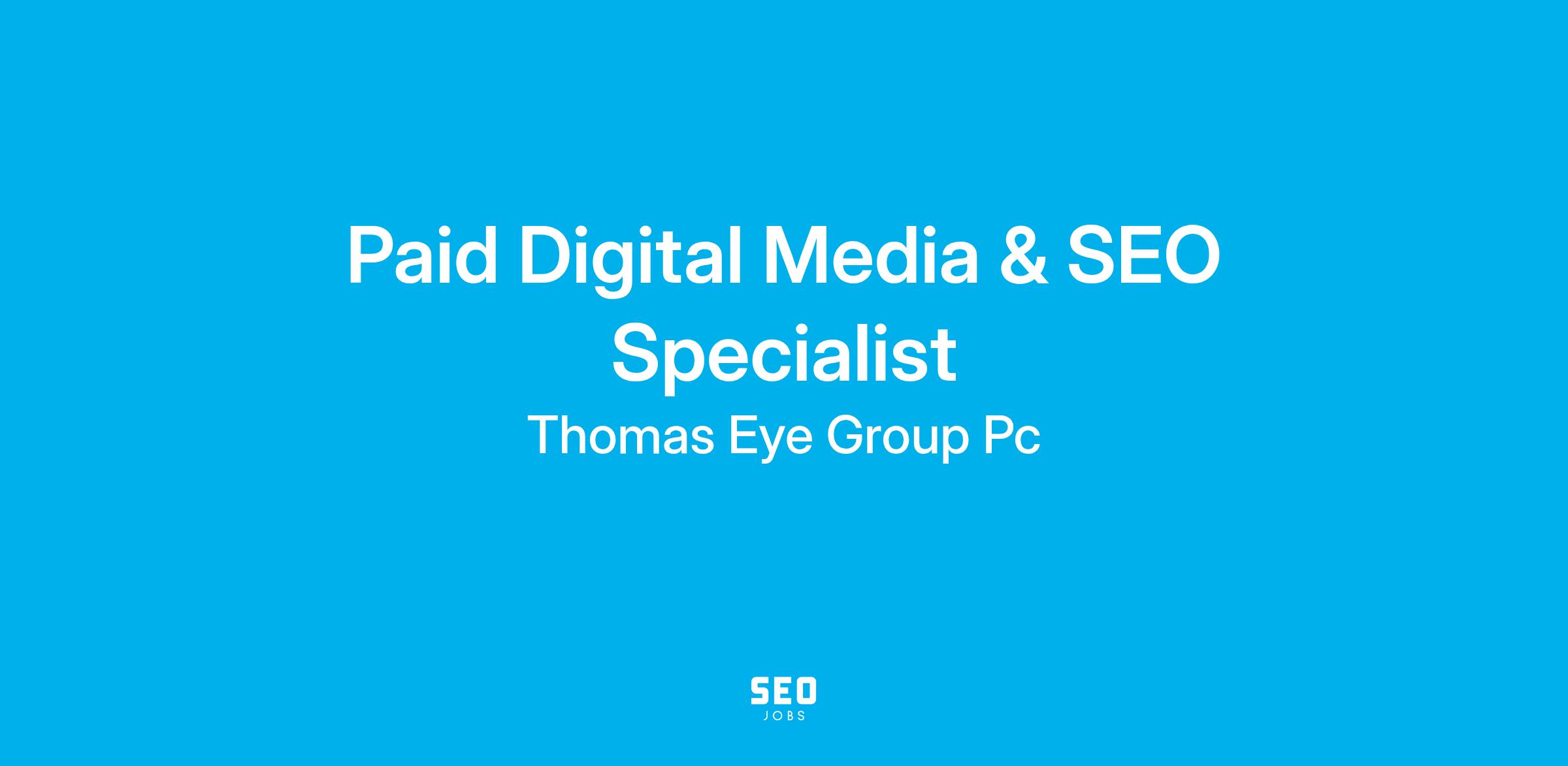 The Paid Digital Media & SEO Specialist role is focused primarily on executing the digital marketing strategy of the Thomas Eye Group. As directed by leadership, this role evaluates and executes digital marketing tactics with the goals of promoting Thomas Eye Group products and services, increasing brand awareness, and generating volume. This is a hybrid position with a typical schedule of two days in-office and three days remote work.