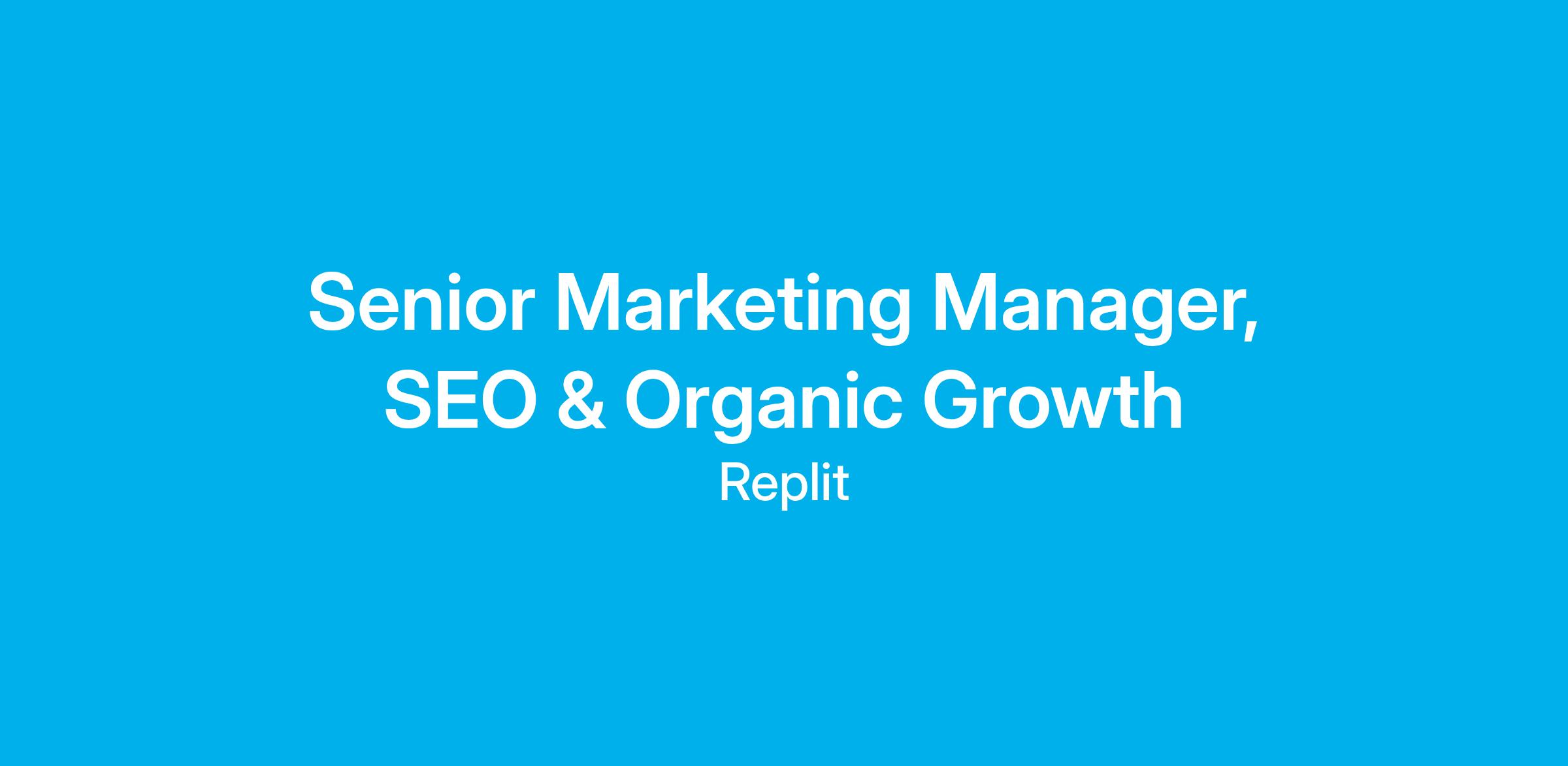 We're looking for a strategic and technical Senior Manager, SEO & Organic Growth to own and scale Replit's organic search presence across traditional search engines, AI-powered platforms, and generative engines. You'll be responsible for driving qualified traffic and improving discoverability as search evolves beyond Google to include ChatGPT, Perplexity, Claude, and other AI platforms.
