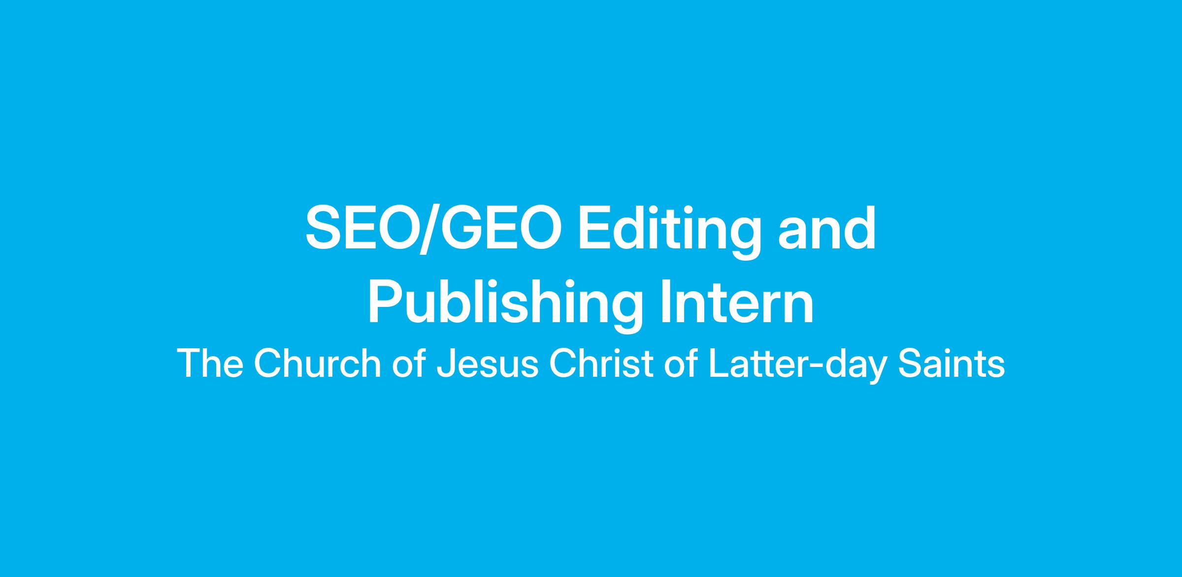 DescriptionJoin a fun, tightknit, and highly functional team focused on creating, reviewing, and publishing excellent written content that inspires people around the world to engage in family history. As the SEO/GEO Editing and Publishing Intern, you will support editorial workflows, strengthen online content performance, and help others make meaningful family connections. This full-time, year‑long internship offers hands‑on experience in content editing, SEO, online publishing, project management, and analytics within the FamilySearch and Family History Department.