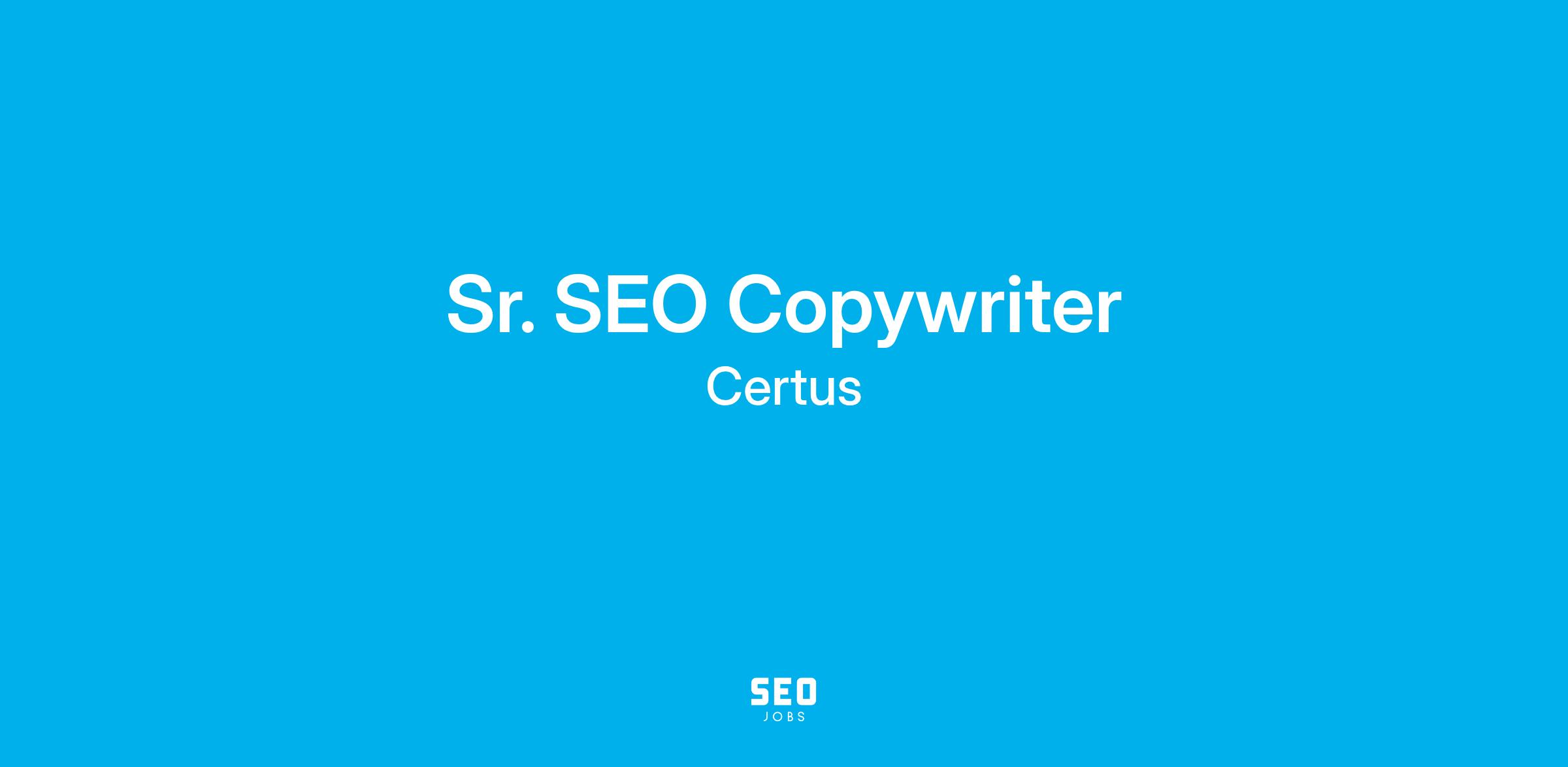 We are seeking an experienced Senior Copywriter to join our Marketing team. As a Senior Copywriter for Certus, you will work with our Product Marketing, SEO, and Design teams to plan, conceptualize, write, and edit SEO-optimized content for various online brands.