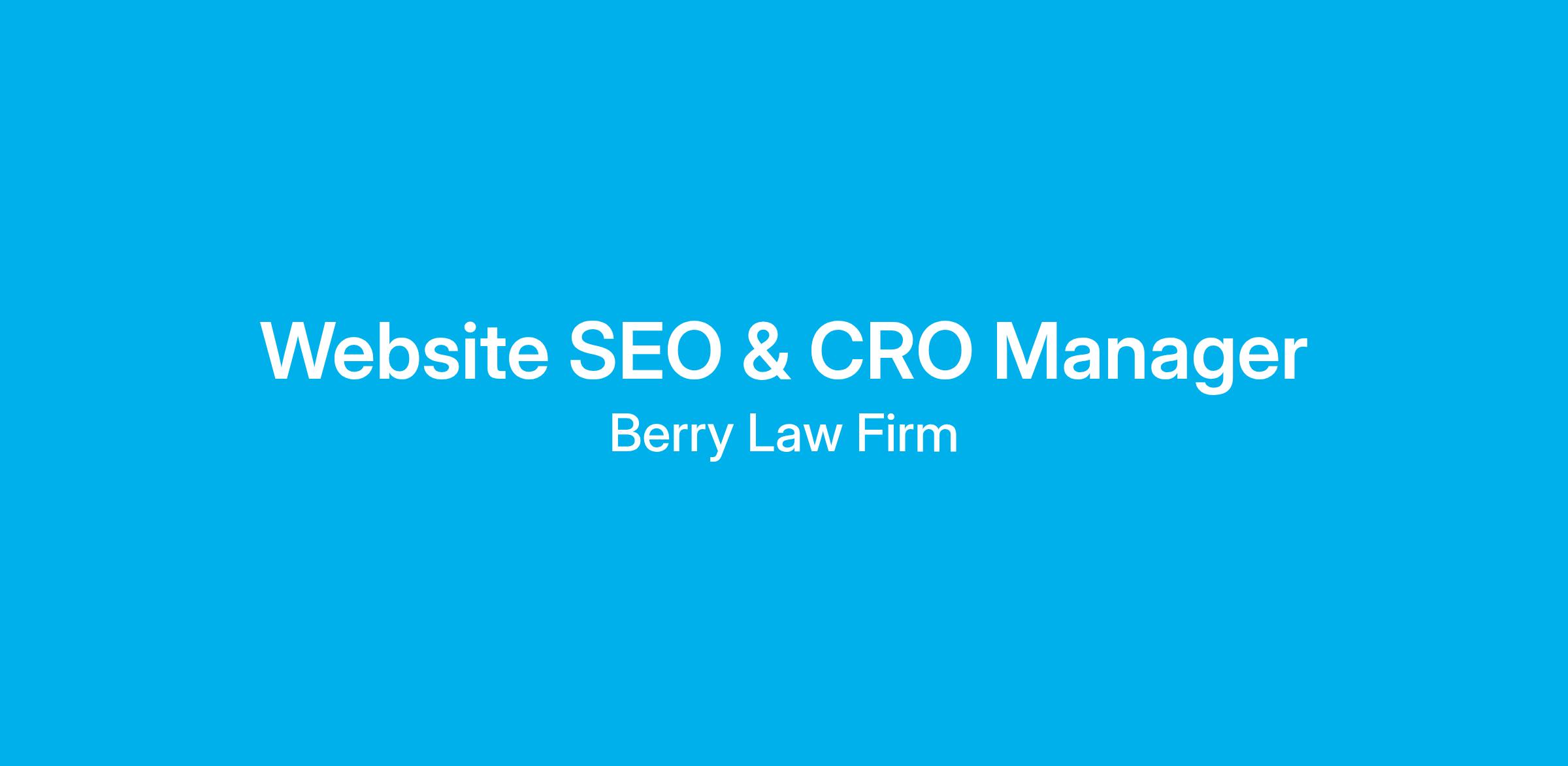 Berry Law is seeking a Website SEO & CRO Manager to lead organic growth and conversion performance across our digital properties.